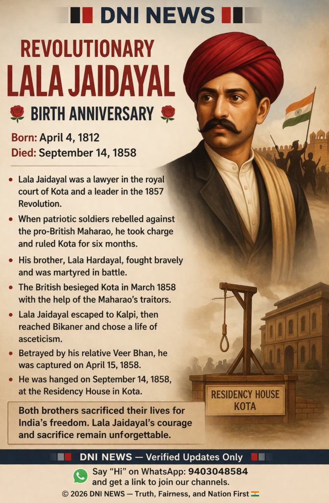 लाला जयदयाल जयंती, Kota revolt 1857, राजस्थान स्वतंत्रता सेनानी, 1857 क्रांति के वीर, Indian freedom fighters history in Hindi, Lala Jaidayal biography Hindi