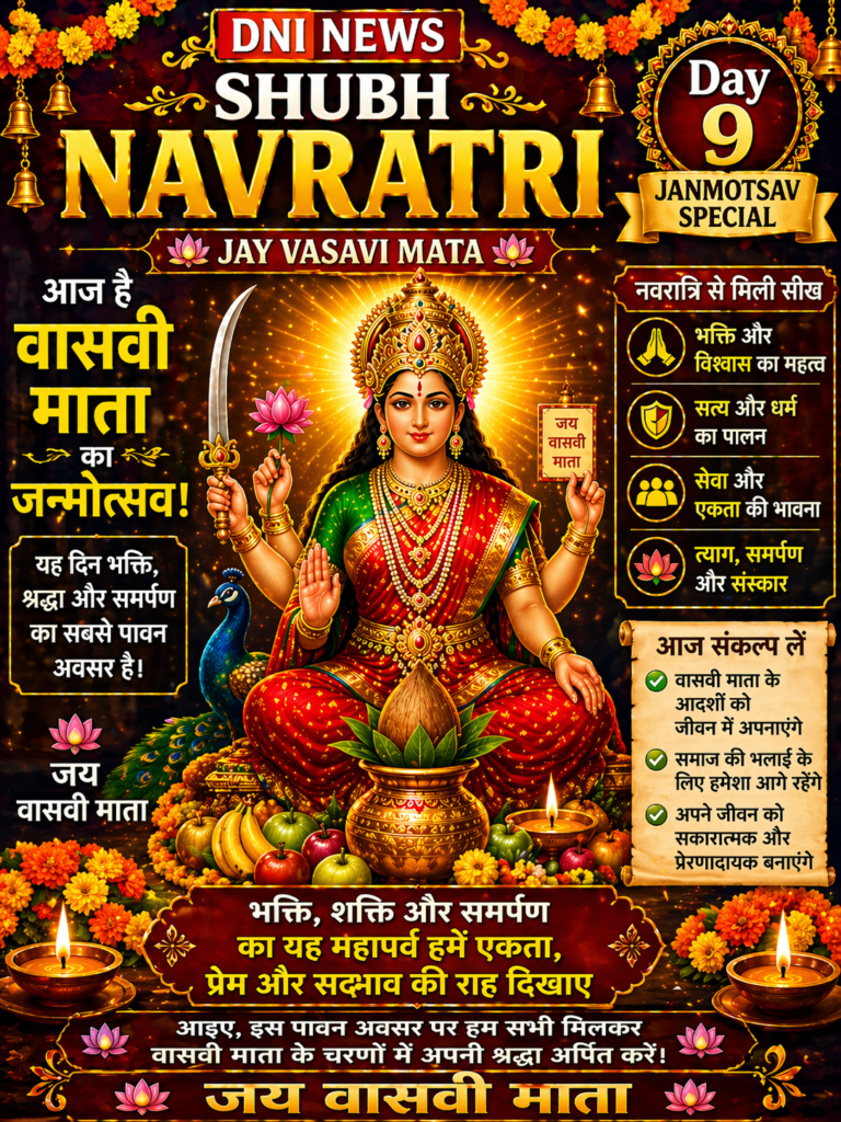 ЁЯкФ Navratri Special тАУ Day 9 | рд╡рд╛рд╕рд╡реА рдорд╛рддрд╛ рдЬрдиреНрдореЛрддреНрд╕рд╡ рдХрд╛ рд░рд╛рд╖реНрдЯреНрд░реАрдп рд╕рдВрджреЗрд╢