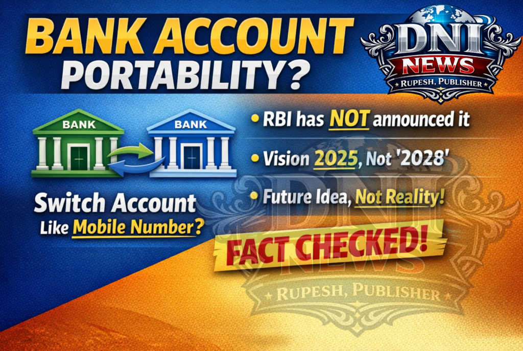 बैंक अकाउंट को मोबाइल नंबर की तरह पोर्ट करने की सुविधा फिलहाल भारत में उपलब्ध नहीं है। यह खबर भविष्य की संभावनाओं को बढ़ा-चढ़ाकर पेश करने वाली वायरल जानकारी है, न कि कोई आधिकारिक नियम।